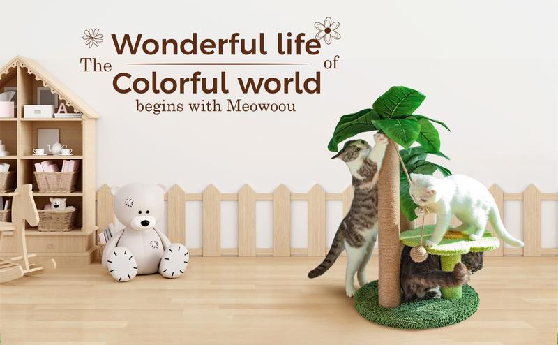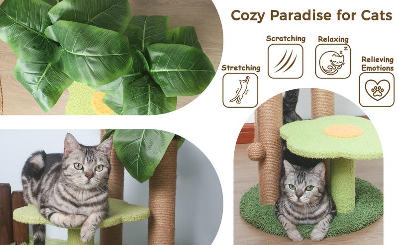 Adorable Cat Scratching Post with Flower and Sisal Dangling Ball and Perch for Adult Cats and Kittens