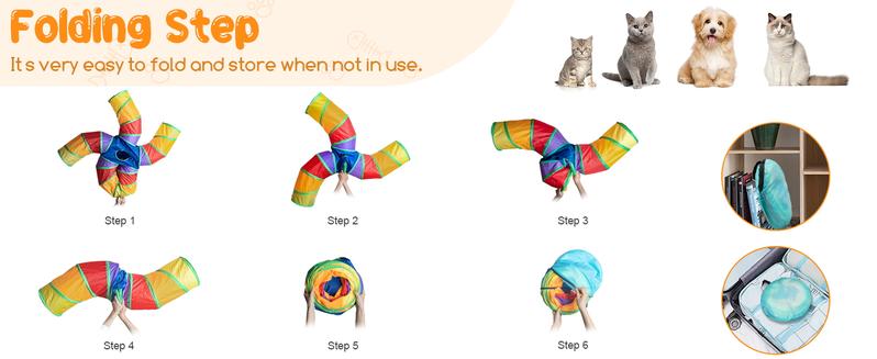Convenience to Use: This cat tunnel toy is foldable, it's easy to fold up and store when not in use.Collapsible design features space-saving, and our kitten tunnel comes with a storage bag, which is portable for you to bring this cat toy to any place