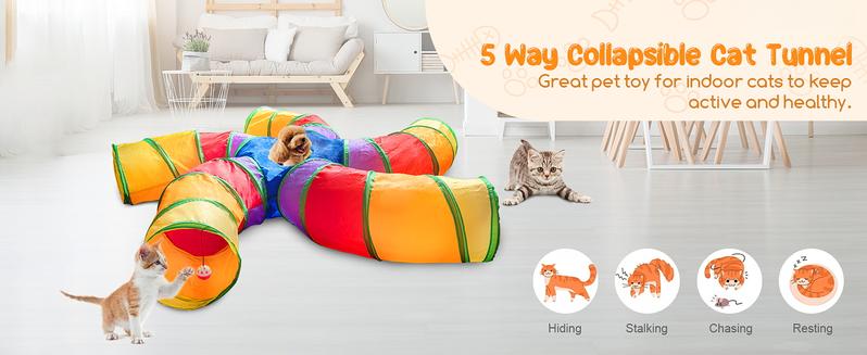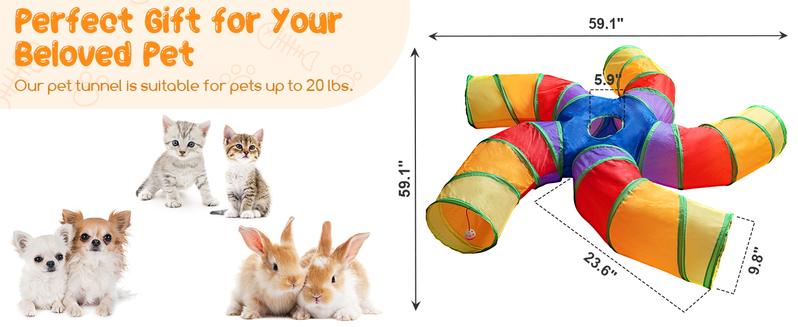 Cat Tunnel for Indoor Cats, 5 Way Large Cat Play Tunnel & Tube with Play Ball, Ideal for Indoor Exercise for Kittens Puppies Rabbits