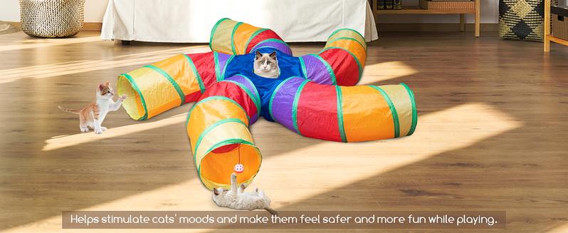 Get More Fun & Keep Active: Our cat tubes and tunnels design with 5 way S-tunnel, a peephole and a play ball, great for cats to hide, stalk, jump and chase each other inside.The cat tubes can provide hours of exercise and self-amusement for your cat